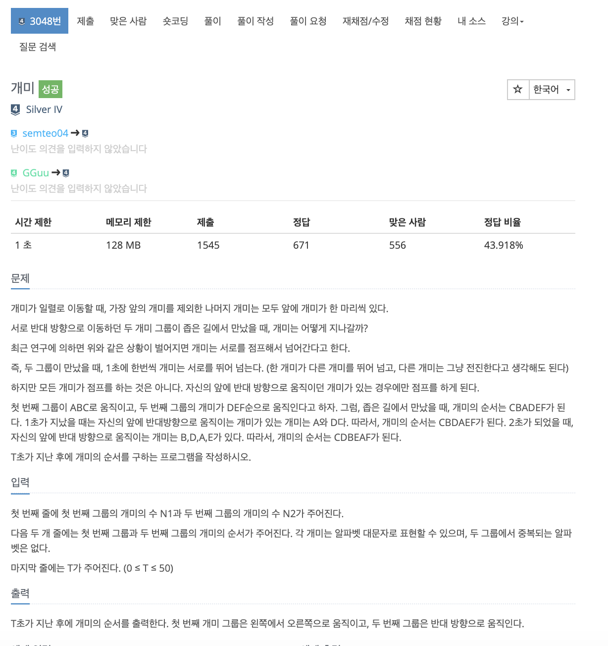# 간단한 시뮬레이션 문제이다. 리스트를 쓰던, 배열을 쓰던 편한 방식으로 사용하여 해결하면 된다. 이 때 조건은