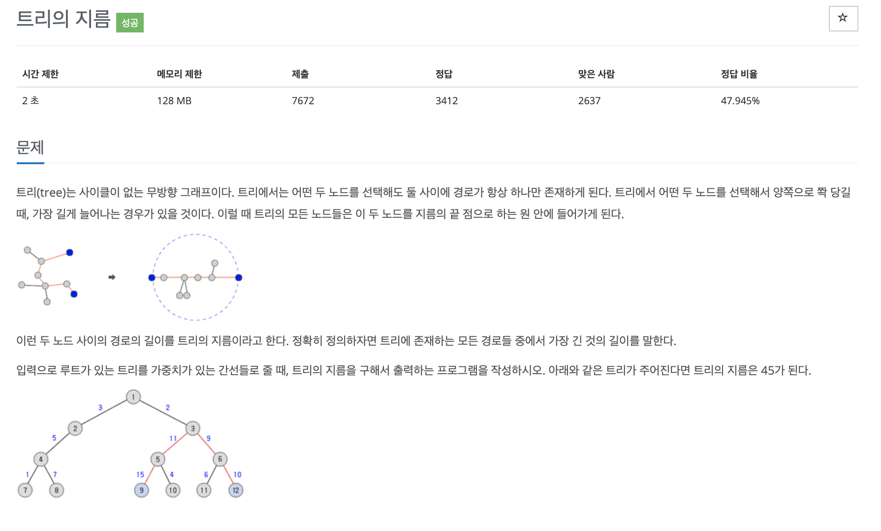 #위와 같은 방식으로 접근하여 풀 수있는 문제. 개인적으로는 1967번 문제를 먼저 풀고, 1167번 문제를 푸는 것을 추천.