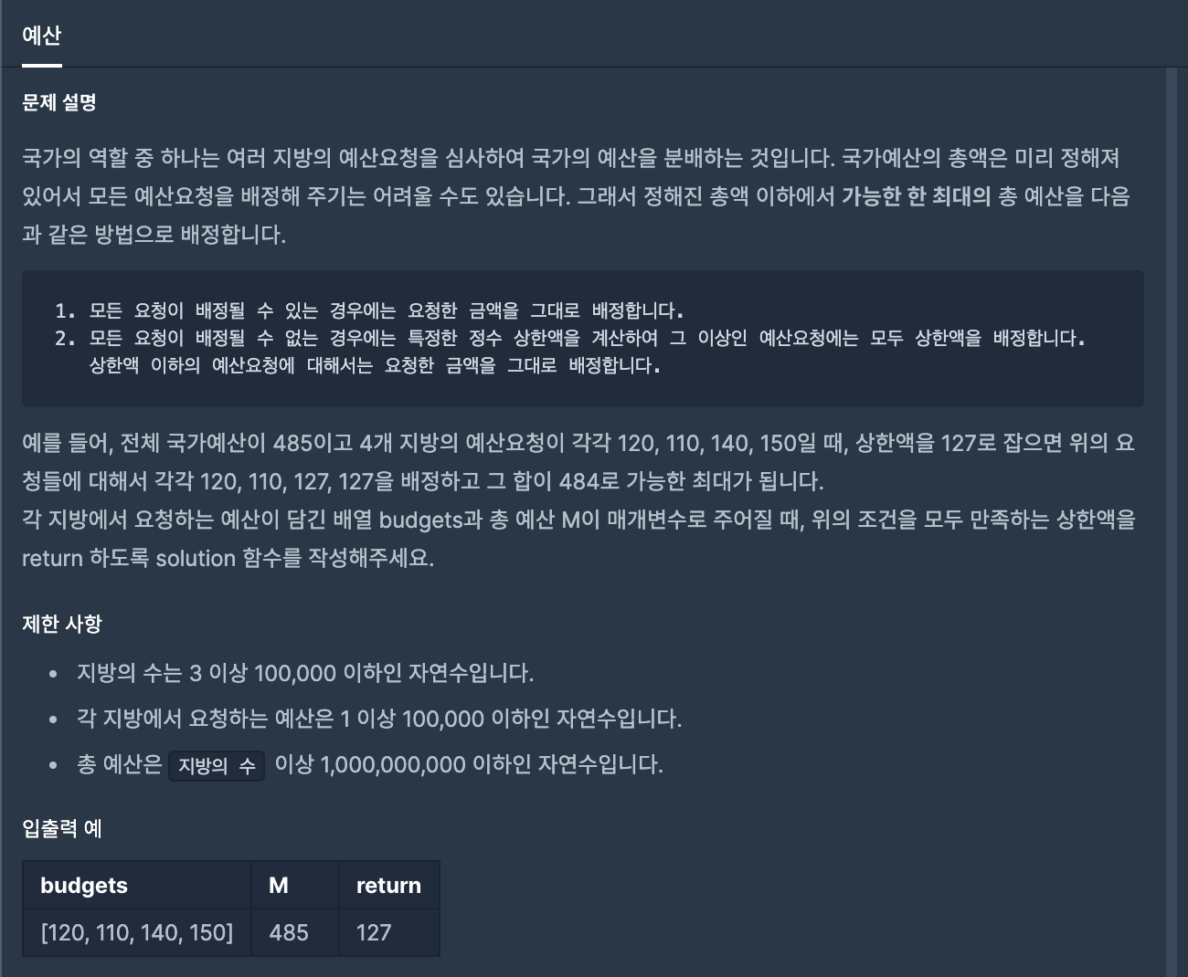 public int solution(int[] budgets, int M) {