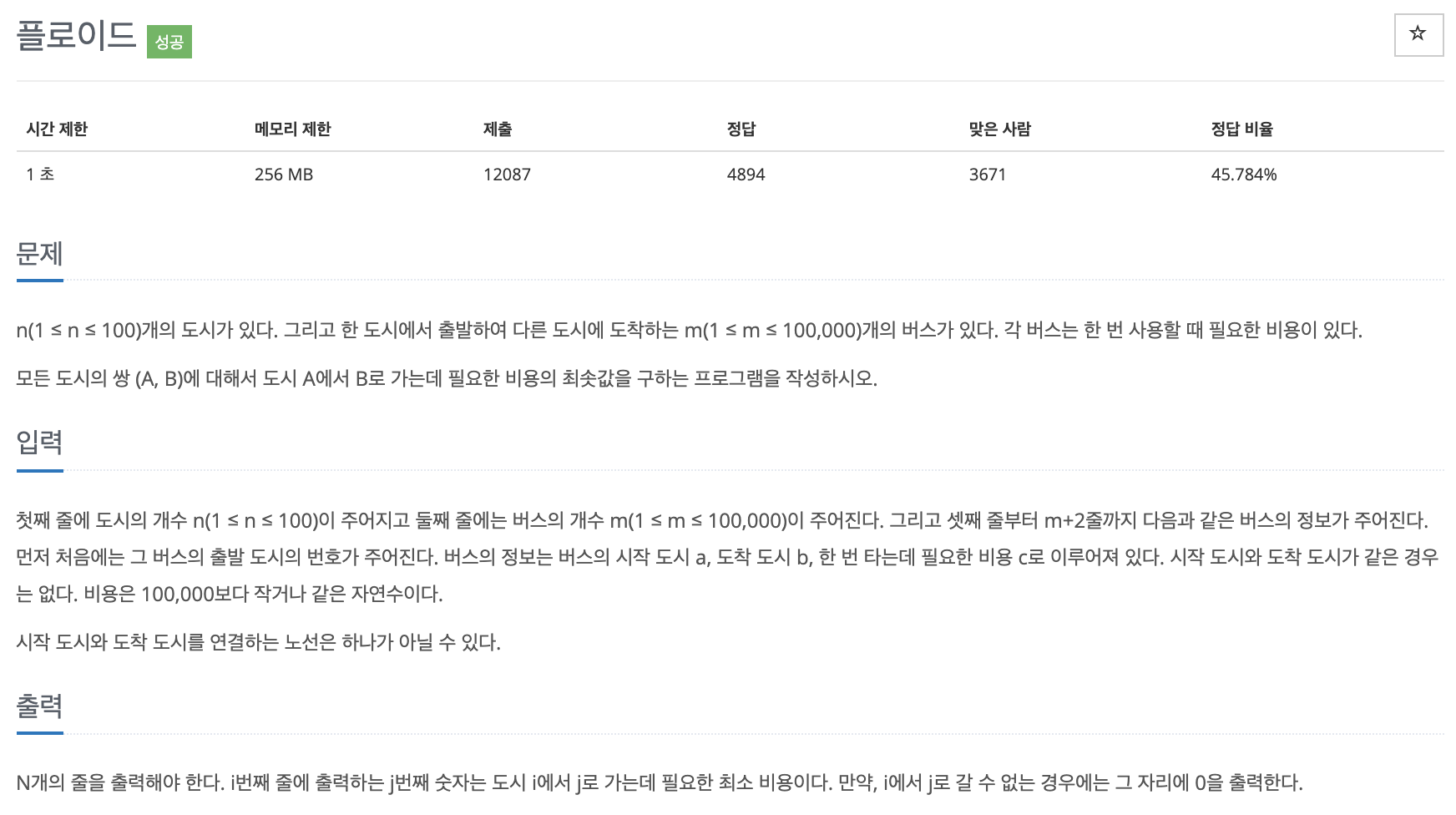 # 플로이드 와샬 알고리즘을 알고 있다면 쉽게 풀 수 있는 문제