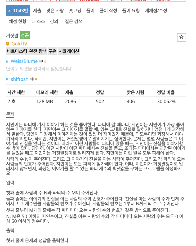 진실을 알고있는 사람이 참여한 파티를 큐에 넣으면서 BFS를 통해 파티들을 체크하며 해결하는 방식으로 접근하면 된다.