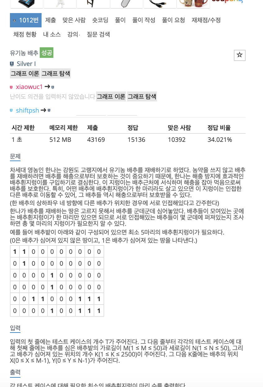 # BFS를 통해 문제를 풀었다. 큐에 넣기전에 방문 체크를 해주고 넣어야 하는데 생각없이 큐에서 poll해서 방문 체크를 해줘서 계속 시간초과가 났다. 당연한 것인데 이것때문에 시간을 버렸다.